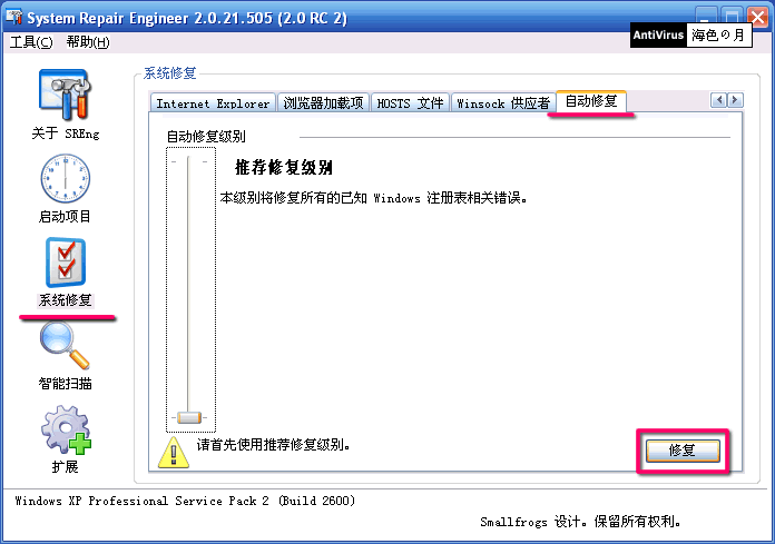 更多说明可见 System Repair Engineer(SREng) 作者 Smallfrogs 主页:http://www.kztechs.com/