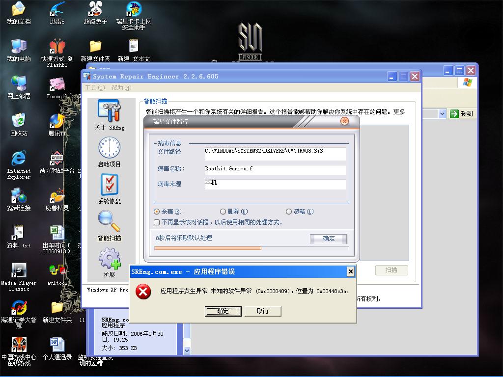 杀不了这个Rootkit.Ganima.f~~重启还是有,我进去系统时提示,看截图