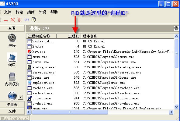 不明白这在IceSword里面哪里能找到这个[PID: 1876][C:\windows\Explorer.EXE]