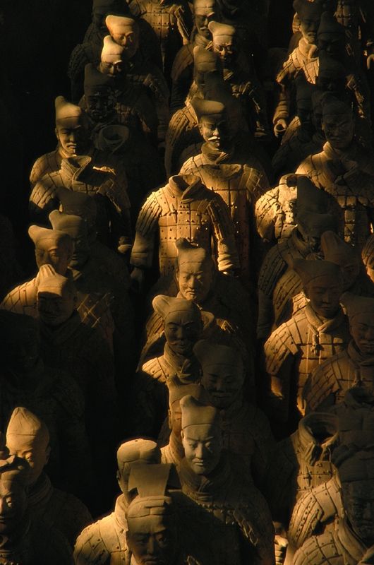秦始皇陵于公元前246年,秦始皇初即位开工修建,前后历时38年,动用徭役、刑徒72万余人。这位叱咤风云的旷世君主不仅为后人留下了千秋伟业,还留有这座神秘莫测的皇家陵园。陵园建制仿都邑,陵墓周围呈回字型,筑有内、外两重城垣,目前探明的大型地面建筑为寝殿、便殿、园寺吏舍等基址。位于西安以东30公里的骊山北麓,南依骊山,北临渭水。高大的封冢在巍巍峰峦环抱之中与骊山浑然一体,景色优美,环境独秀。1987年被认定为世界遗产!!