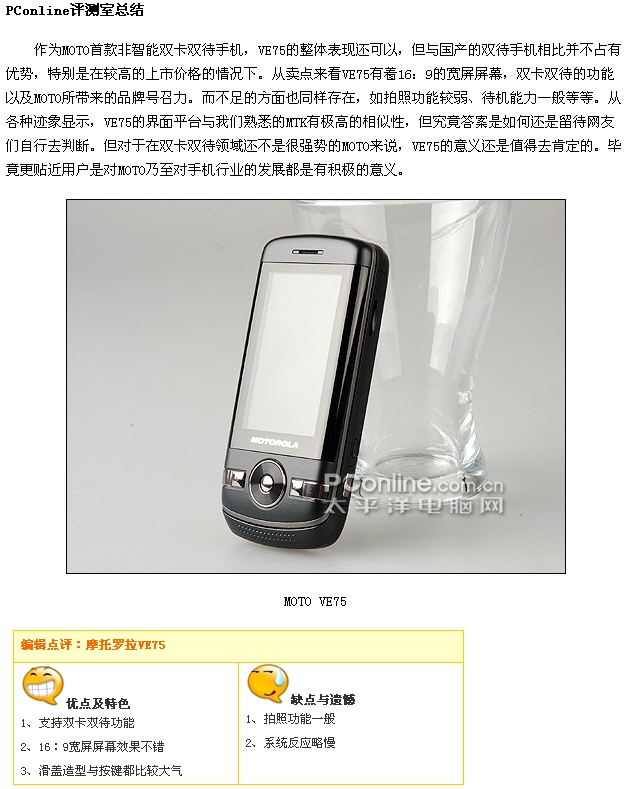 『手机评测帖087』MOTO VE75