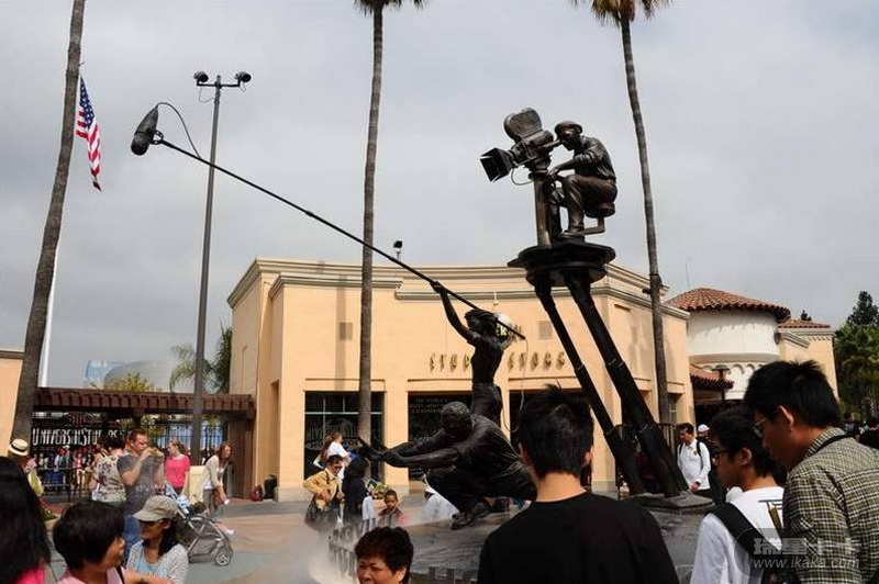 注意看,后面正有一位女追星族踮起脚在亲吻一位好莱坞男明星(据说是泰坦尼克号中的男主角)的塑像并留影。