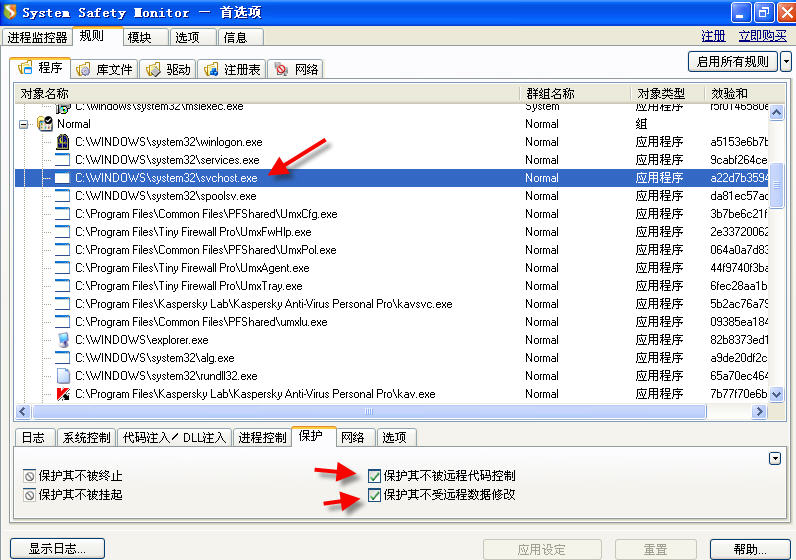 我的svchost.exe的设置: