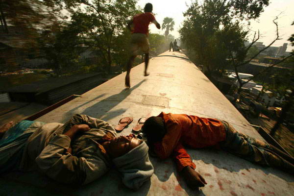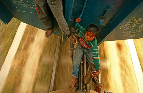 住在火车站的孩子能经常以这样的方式往返于城镇之间,同时,还能免费寻求刺激。