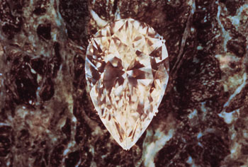 12 — 72.84 carats; irregular pear shape; champagne