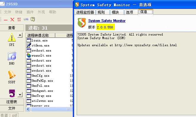 注意:不要关机。关机后,再开机——你只能在SSM和IceSword二者中选择其一了。不关机怎么办?老开着?不是还有“待机”呢吗?需要关机时,就选“待机”吧。好在SysSafety放话了——这个BUG将在build559版解决。