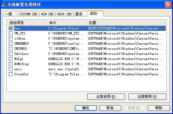 不是啊,我的启动项才只有3个啊。两个TINTSETP和一个KAV卡巴