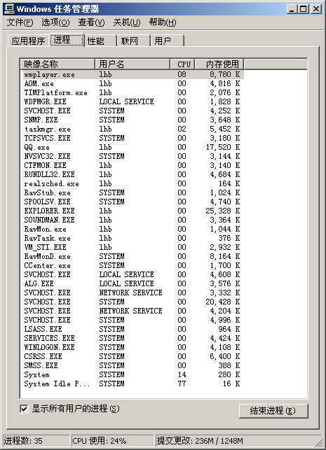 我机子的进程表请各位看看