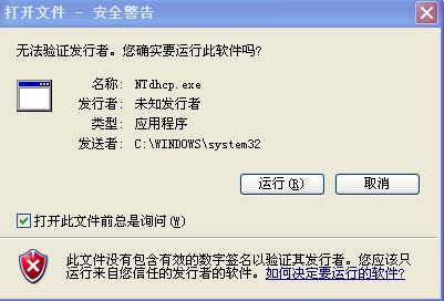 都提示我要不要打开个叫NTdhcp.exe的文件