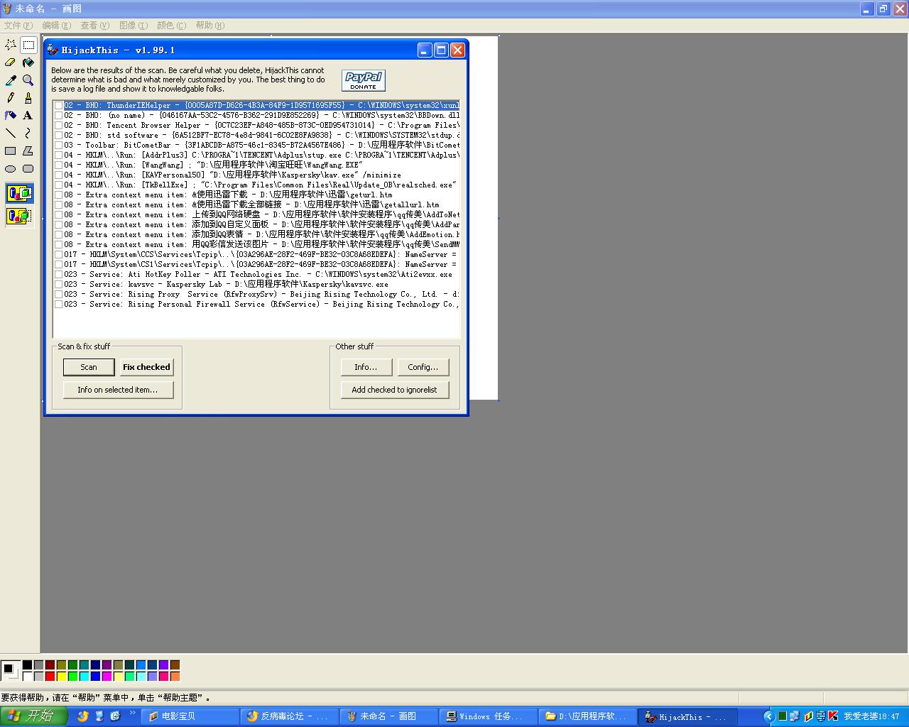 O4 - HKLM\..\Run: [KAVPersonal50] "D:\应用程序软件\Kaspersky\kav.exe" /minimize