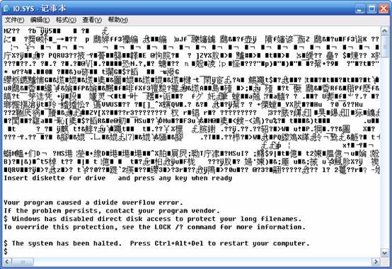 启动时有了双启动菜单,但选DOS后提示I/O错误,怎样加才能正确启动到dos下?谢谢!