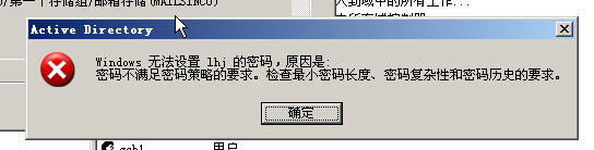 大家好,其实我在这里发这个贴子,不是给你们分享,是要请各位高人指点一下,我在Win2003平台上架设域服务器,都可以创建用户及更收密码,可我安装上Exchange2003后,以前现有的用户可以正常使用邮箱,可是不能新建用户,也不能对现有的用户修改密码.创建用户和修改密码都会提示密码不满足密码策略的要求检查最小密码长度,密码的复杂性及历史记录.这是怎么回事.有经验的朋友指点一下,兄弟万分谢.