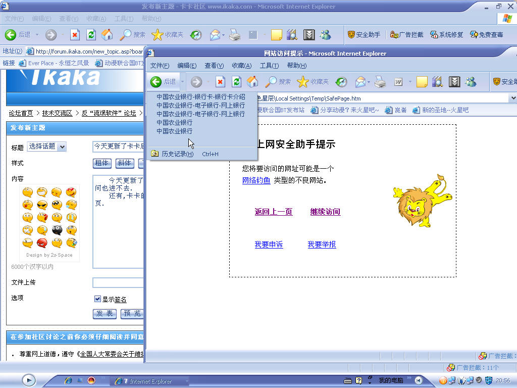 今天更新了卡卡后怎么打不开农行网站?说是访问的有可能是个掉鱼网站.点了继续访问也进不去.
