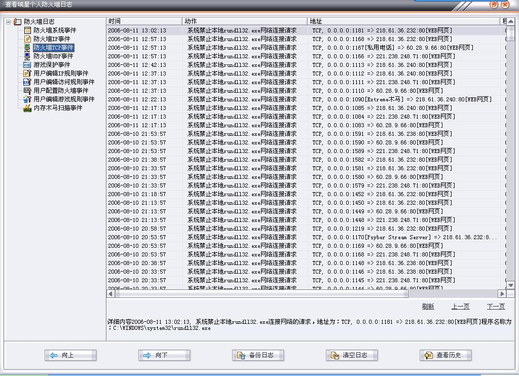 我的瑞星防火墙TCP事件显示系统内的rundll32.exe程序总是要与网络连接!!!会不会是木马、病毒什么的?请高手和版主们帮忙呀!!!