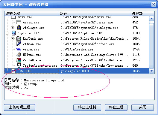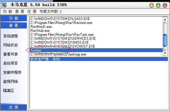 我已经用新版的瑞星查过咯,没毒,但为何它们会在进程中的,而且无法把它终止的,请教啊,急啊
