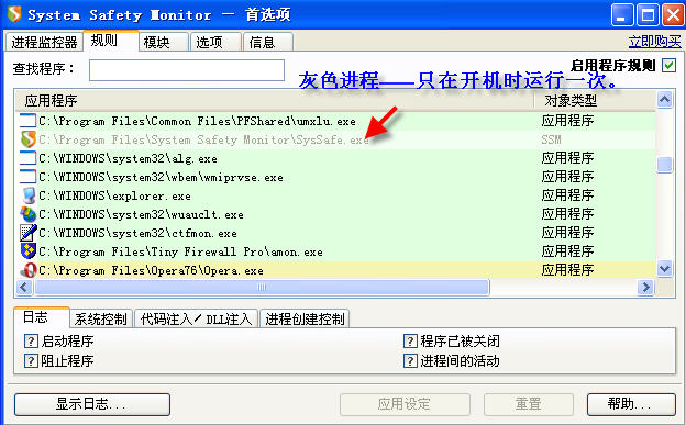1、在SSM的“规则”中添加两条规则,禁止其.exe和.dll文件加载(图1),并将SSM设置为“自动加载”。