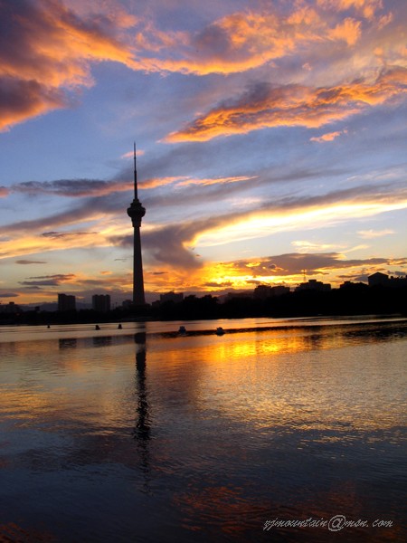 非常美丽的晚霞,只可惜电视塔的灯没开。