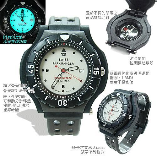 这支瑞士国家公园巡逻队所配戴的高山巡逻表,特别是针对高山多变的气候状况所设计,不仅具50公尺的抗水设计,表盘有萤光设计,可清晰地辨识时间,这款手表附有高品质指北针,置於个别的隔间中,更能适应如暴风雪等的恶劣气候,让你随时掌握自己目前所在之方位,arnitel制的表带,能根据你的手腕大小来做调整,配戴起来更舒适、牢固,有了这支表,你征服高山的雄心壮志,将不再是个梦想!