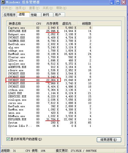 SVCHOST特别占内存,还有EXPLORER也太占内存了。主要是SVCHOST可疑,六个中这个最可疑,各位出出主意,我该怎么办?谢谢大家……。在线等……谢谢哦