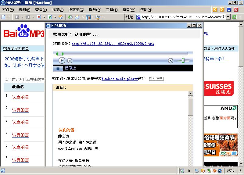系统为:XPsp2 ,播放器media player及Real plyer 都安装了