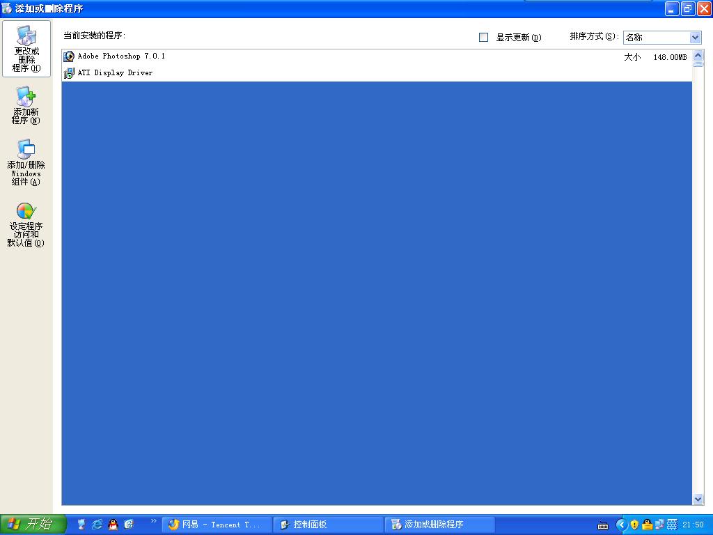还有我那个添加删除程序里有很大一段是空白的如图,用鼠标点一下就蓝了,可是没什么反映。这个是怎么回事?