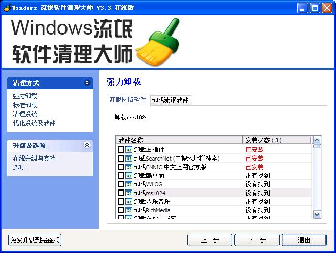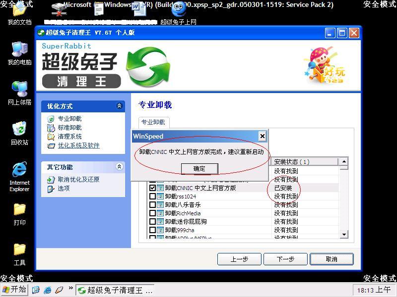 中了"CNNIC中文上网"流氓软件,用过下列软件:RogueCleaner.exe,KillBadware.exe,Windows 流氓软件清理大师clean.exe,反反复复进出安全模式多次,无果而终.