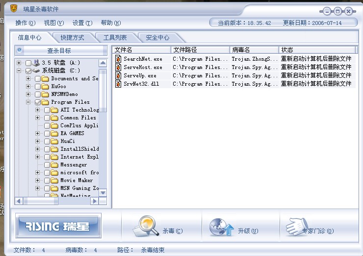 我的瑞星已经升级到最新版本了。。为什么发现病毒后。。杀掉病毒。。