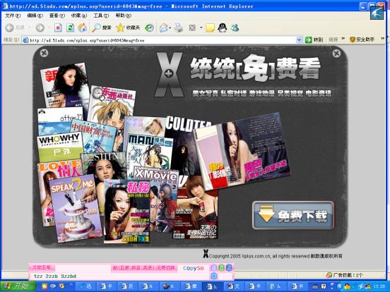 前两天也不知道上了什么网以后就突然出现安装酷图桌面,瑞星提示是否修改注册表,尽管我点了否,那个酷图桌面还是安装上去了,还提示:酷图桌面不是病毒,只是一个桌面程序,就这样把我的桌面改了,后来我自己把桌面改回来,把那个酷图桌面也删除了。然后就是我一上网开网页的话,就会跟着跳出来一些乱七八糟的网页,有易趣新品站,卓越网,还有抽奖网站,还有宽频电影,铃声下载。。。(还真不少),另外右下角还会出现类似QQ广告一样的广告栏,后来我都没有开QQ依然会出现,而且每次出现那个广告栏以后就会紧跟着打开一些乱七八糟的网页!