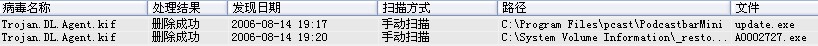 我今天用正版瑞星杀毒查出有Trojan.DL.Agent.kif这个病毒,