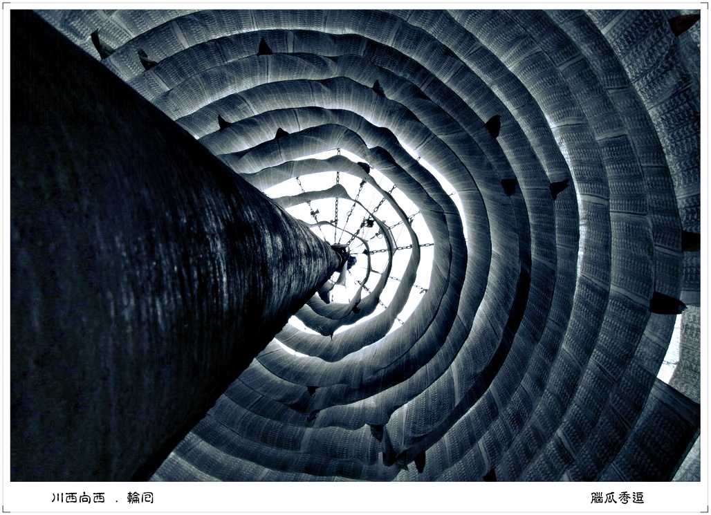 那是经幡了.是把经文印在布上,挂在祈福的地点,这是圆型的经幡,比较少见,我也是第一次遇见