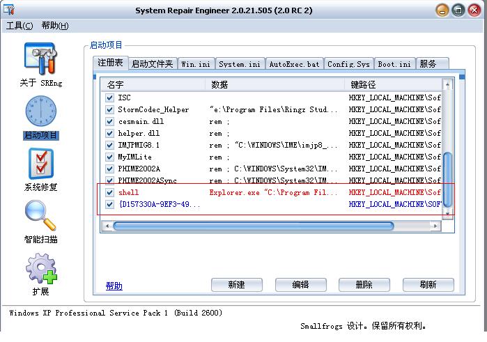 但是System Repair Engineer,“启动项目,注册表”里找不到