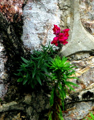 蟠龙路南京电影制片厂大墙外的排污渠的石壁上,一团火红吸引了我,那是什么样的一种花呀,在污浊的水渠的石壁上寂寞的开放,寂寞的等待——