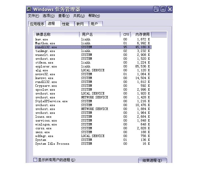 进程中多了一个"rundll32.exe",打开我的电脑时间超长!请问该如何解决!用卡巴查不到病毒!木马克星也检测不大木马!具体进程如下图!哪位大大帮帮忙!