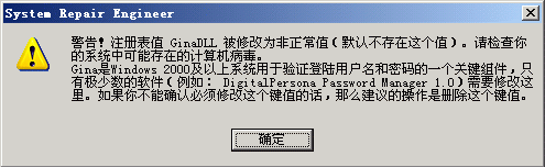 另外用SREng扫描进入启动项目--注册表项的时候弹出提示如图: