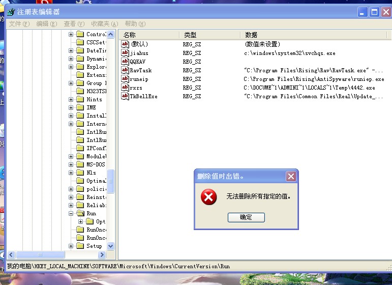 高歌猛进大哥,你好,按照上面的指示操作,前面的删除了,可是到注册表时,一碰到这三项,就没办法删了,根本就删不掉,请问怎么操作才能删掉啊,多谢多谢