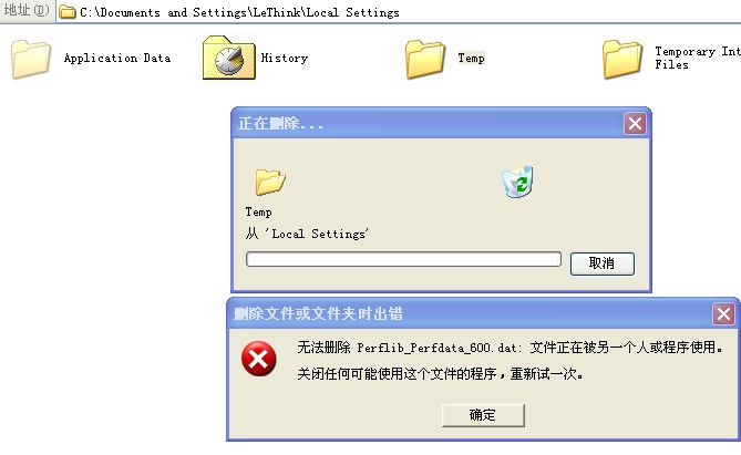 【aikakaka的贴子】显示隐藏文件后,清除C:\DOCUME~1\LeThink\LOCALS~1\Temp\文件夹下的所有临时文件;