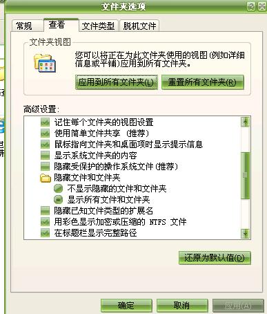 【红夜鬼1的贴子】我的电脑---文件夹选项----查看----隐藏已知受系统保护的文件勾去掉,显示所有文件勾上,隐藏已知文件类型的扩展名这个勾去掉