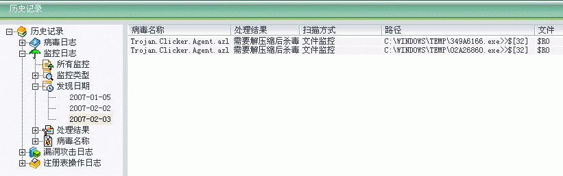 楼上的兄弟说的这些个要修复的东西,我基本上都知道是干什么的。安全模式下一样打不开隐藏文件夹。我刚看了下瑞星的历史记录,当时有两个程序要修改我的注册表,一个是329.exe,还有一个是okads071.exe。这是报毒的时候的异常。不知道是什么东西?