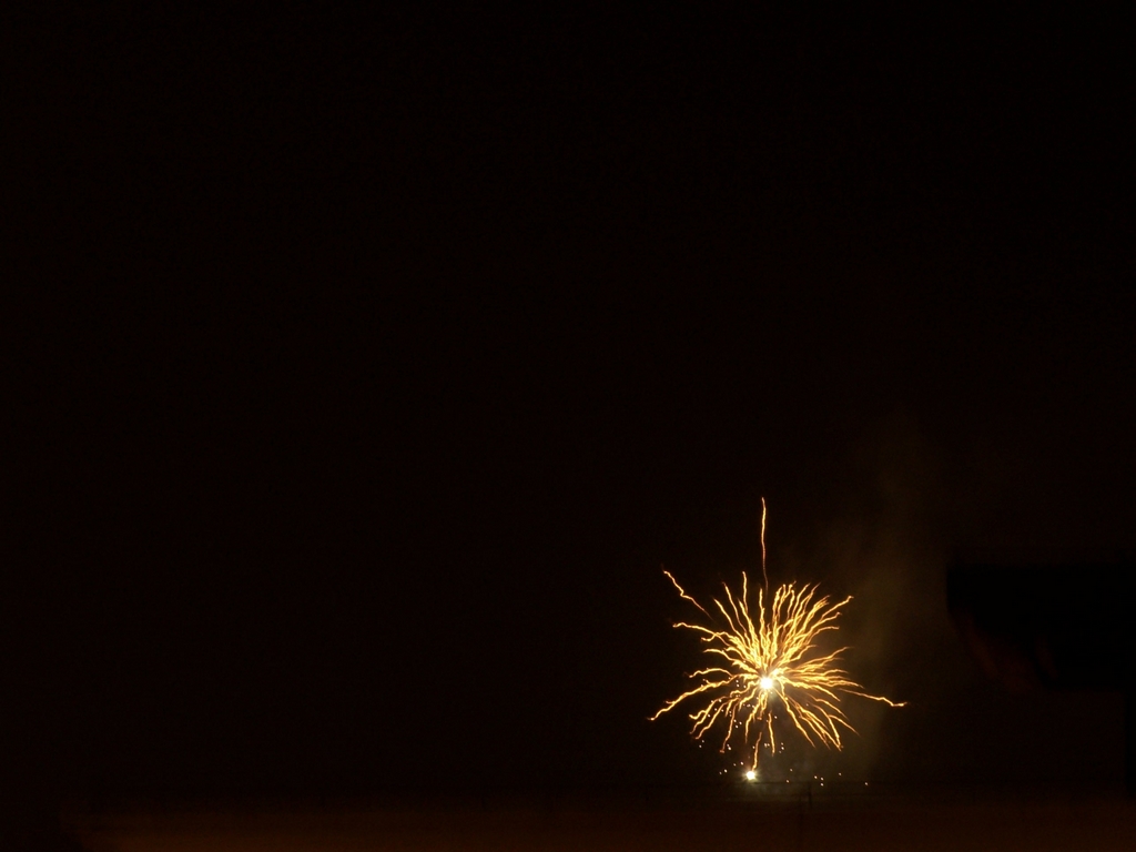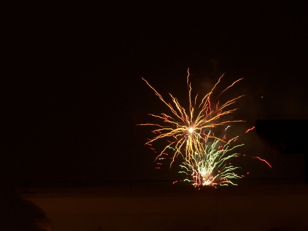 【玻璃。的贴子】楼主也是在天台上拍的吧,被栏杆遮住了一点点;手持所以相机也有些抖动,不过还是抓住了烟火绽放的瞬间:)