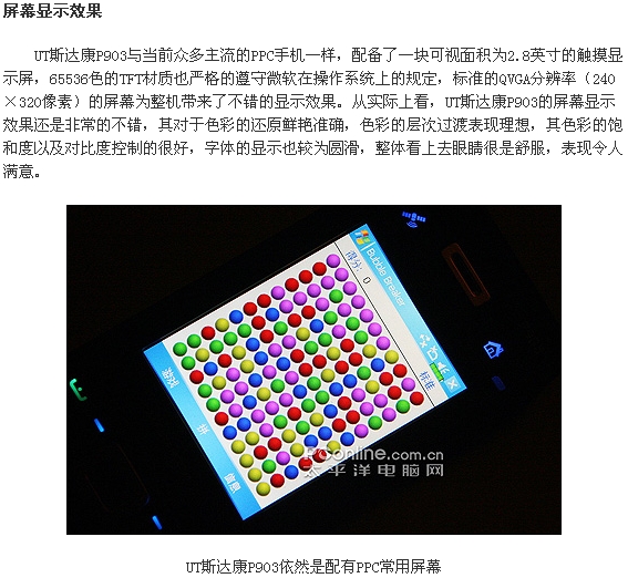 有着较低价格优势的UT斯达康P903具备GPS全球卫星定位,内置了高强的硬件配置,在性能方面极为出色。但从其强劲的硬件配置来看,其性能应当在多普达P800之上。然而这款斯达康的实际表现如何呢?是否真的能够和多普达P800来抗衡呢?