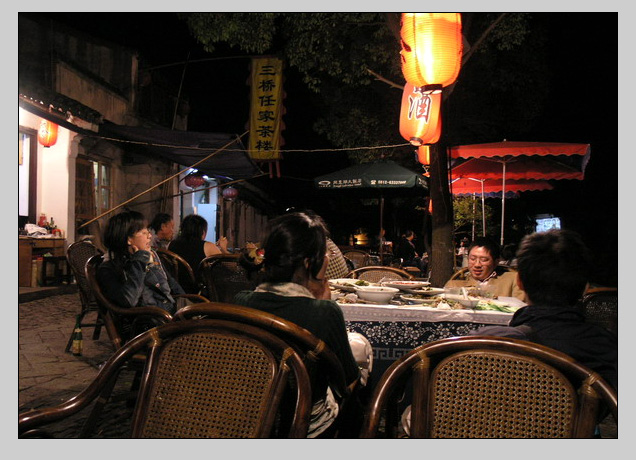 想拍同里夜色的,没拍象。这个时间的同里看到的大都是酒。当然酒也不是什么大酒,小酒而已。白天的同里不知好不好?但白天进同里要80元的门票,下午5点以后,早上8点以前看门的下班了,才不要票。进一个镇子、一条街要买票,可能不算是苏州人的创举。古时绿林客干的也是这个营生,但大都是在夜里或人少之时,苏州人还真是有才。什么时候要能把门放到火车站,进门就买票,就一定是个旅游大市了。