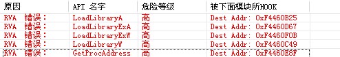RVA  错误: GetProcAddress (危险等级: 高,  被下面模块所HOOK: Dest Addr: 0xF4460E8F)