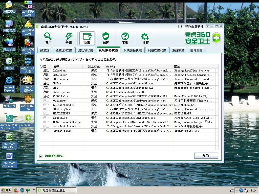 下了安全卫士360,查出svchost感染了灰鸽子变种,瑞星就是查不出,哎。清除后检查服务时候发现这个服务wuauserv,好象侵染了自动更新服务。停止后机子立刻自动重启。之后关机倒是好了,服务却停了一堆,也无法再启动,不知道有什么影响不?能不能修复?