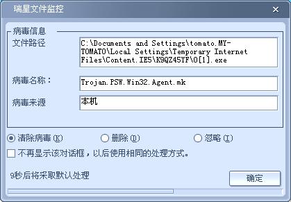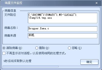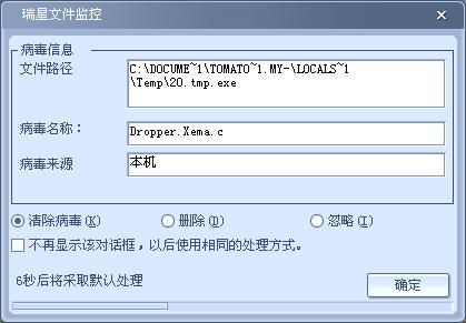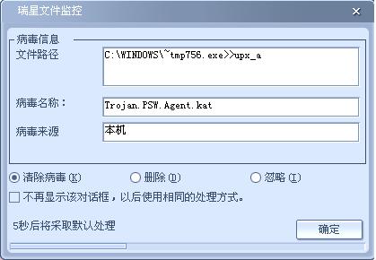 瑞星监控到这个病毒,但第二次开机仍有