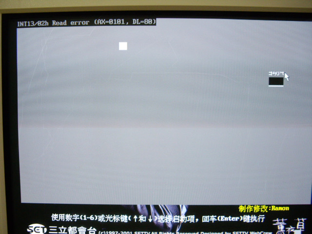 用番茄花园的XP装机盘安装,复制文件后重起出现下面画面就无法装了