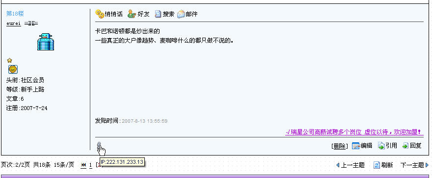和前面“爱咔咔”,"mini2008","mimi2008""糊弄局门口" 是一回事 诺顿 趋势的枪手 论坛里灌水 发广告