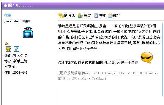 PS:刚开始 只删的帖子 他又发了一个帖子 截图在2楼