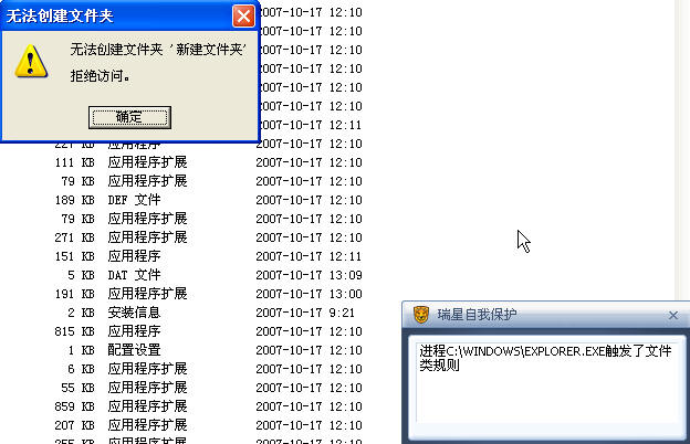 例如:想在瑞星的目录下新建一个文件夹,则会弹出如图提示,且无法新建。如图: