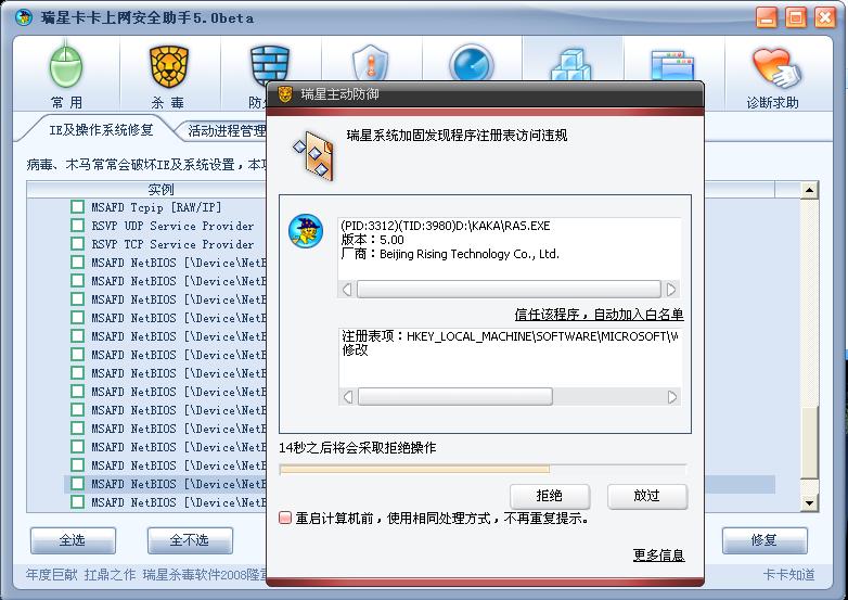 瑞星2009测试版问题反馈