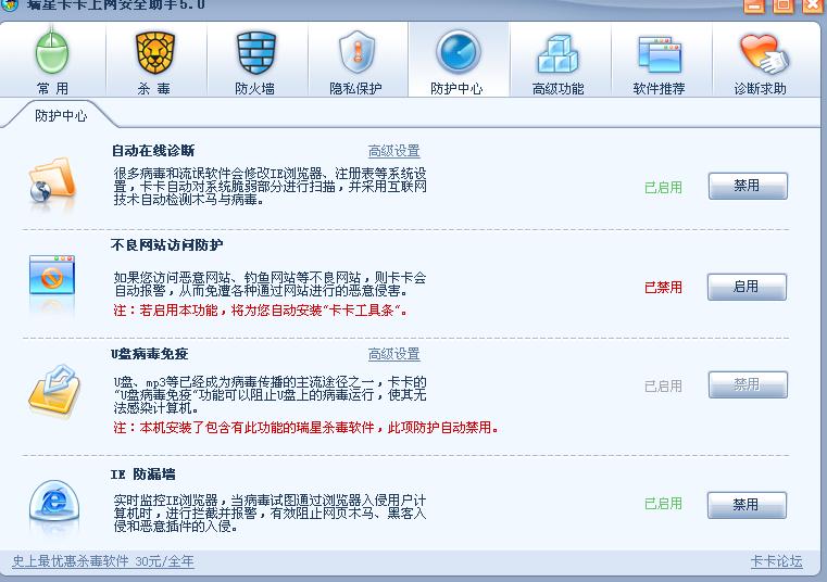 U盘病毒免疫,我一直没有启用过.我的瑞星扫描漏洞,修复后.U盘病毒免疫就启用拉